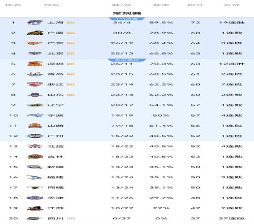 CBA瘋狂一夜:上海戰(zhàn)勝北京奪19連勝,廣廈又輸廣東,排名變亂了
