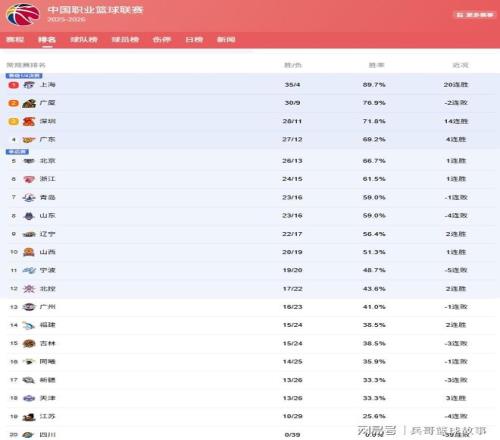 上海隊豪取20連勝,以35勝4負鎖定聯(lián)賽第1,本賽季他們不僅是戰(zhàn)績最佳,還有望追平球隊的連勝紀(jì)錄,23連勝!