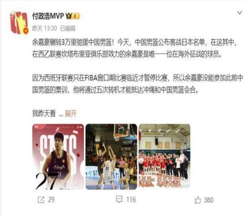 為什么不能從巴塞羅那直飛東京呢?因為他還要回北京拿到自己的公務護照,這幾次轉機時間都是比較緊迫的,中途幾乎沒有休息的時間。作為2米21的大個子,即便是商務艙的座椅坐起來也會覺得不舒服,況且還是連續高強度長時間的飛行,太辛苦了。預計在24日今天晚上余嘉豪才能抵達沖繩,所以說只有明天一天的時間和球隊進行合練,另外余嘉豪還要進行休息調整時差等,真的太不容易了。