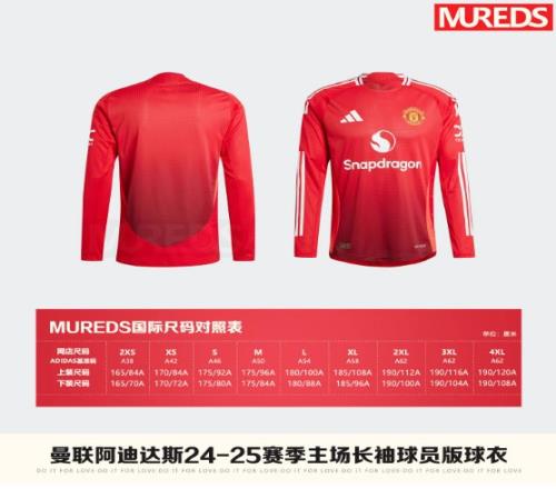 曼聯(lián)24-25賽季主場男子球員版長袖球衣IT1988