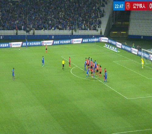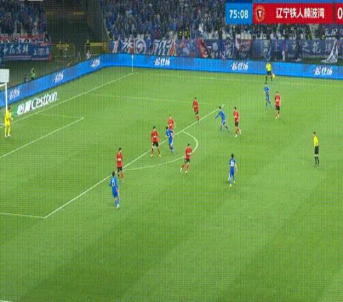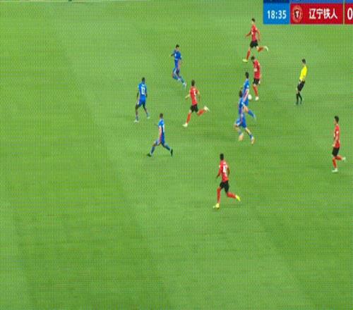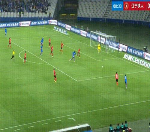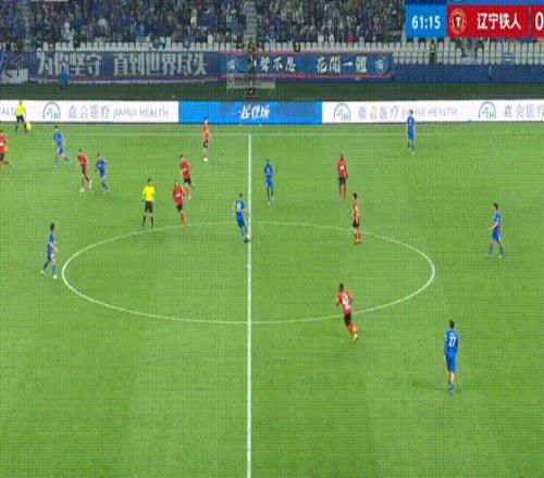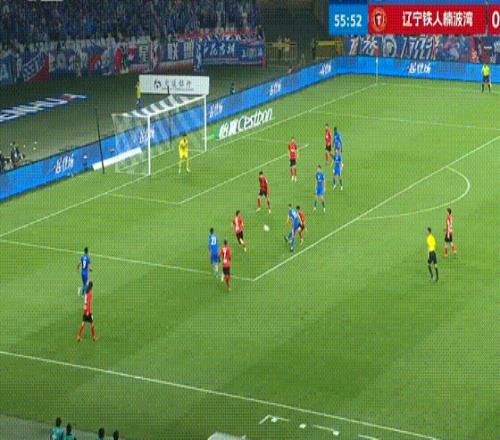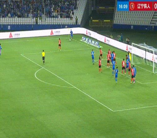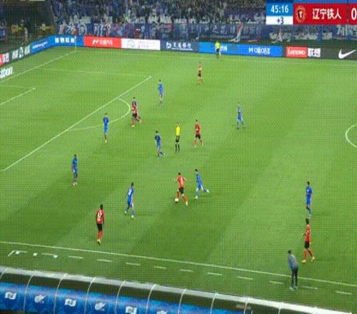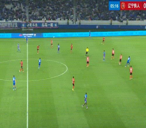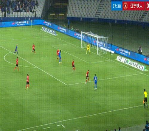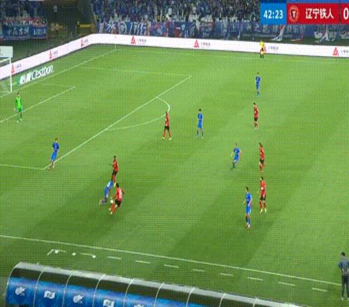 第43分鐘,遼寧鐵人搶斷反擊,姆本扎跳過了門將射門,朱辰杰上演極限解圍。