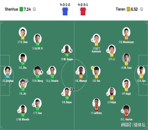 中場:10-特謝拉【46分,30-謝鵬飛】、9-拉唐【73分,21-徐皓陽】、17-高天意【67分,43-楊皓宇】