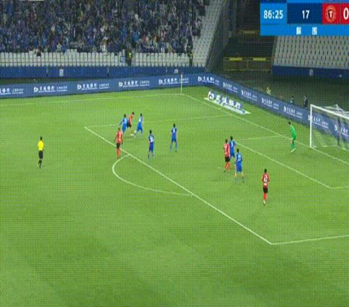 第76分鐘,謝鵬飛挑傳到禁區,小將楊皓宇頭球攻門稍稍偏出。
