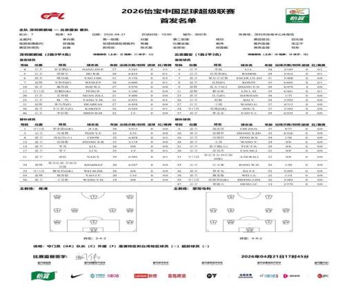 北京時(shí)間4月21日19:00,中超第7輪展開(kāi)爭(zhēng)奪,深圳新鵬城坐鎮(zhèn)深圳市體育中心體育場(chǎng)迎戰(zhàn)北京國(guó)安,本場(chǎng)主裁判為單丹...